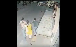 Imagens de câmeras de segurança mostram o momento exato da ação, quando os dois homens chegaram e anunciaram o assalto, com agressão e fugindo em seguida fazendo um refém, logo após liberado.