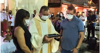 Marcelo Matias esteve acompanhado da primeira-dama Eliane Santos. Durante a celebração foi entregue uma comenda de saudação ao filho da terra, que nasceu no Sítio Alívio.